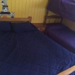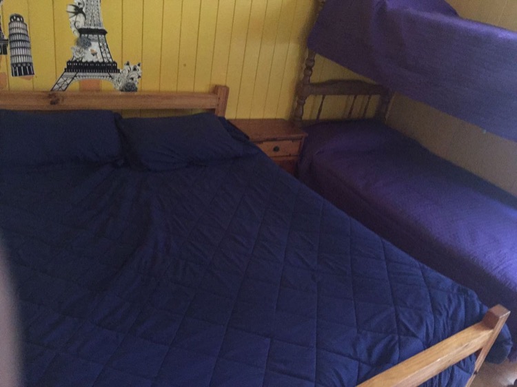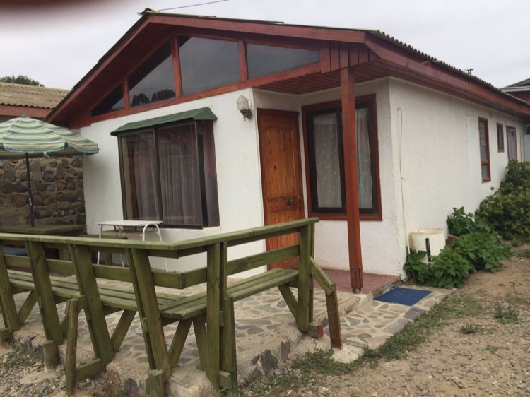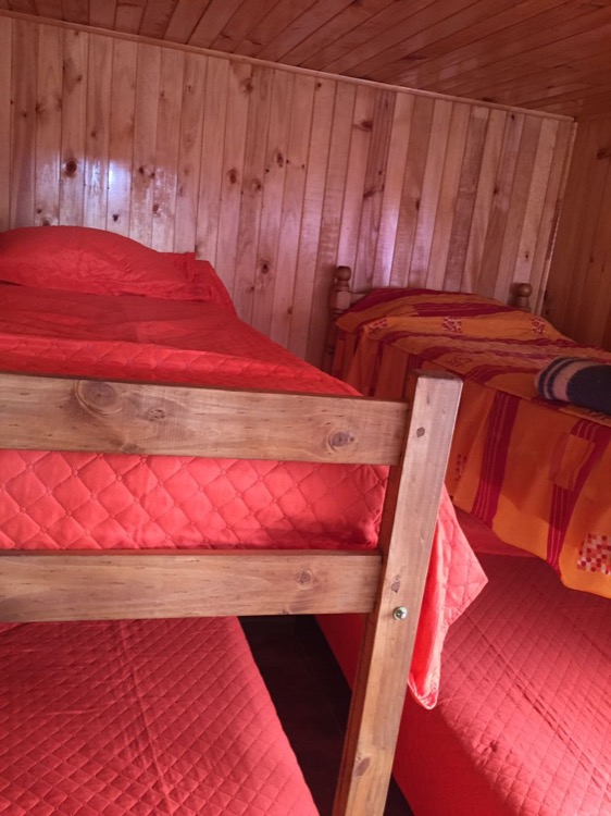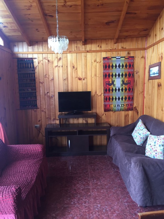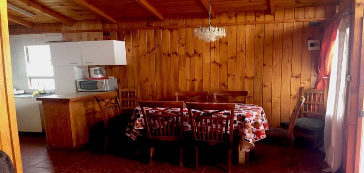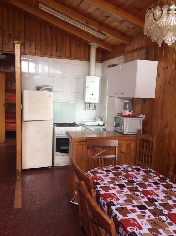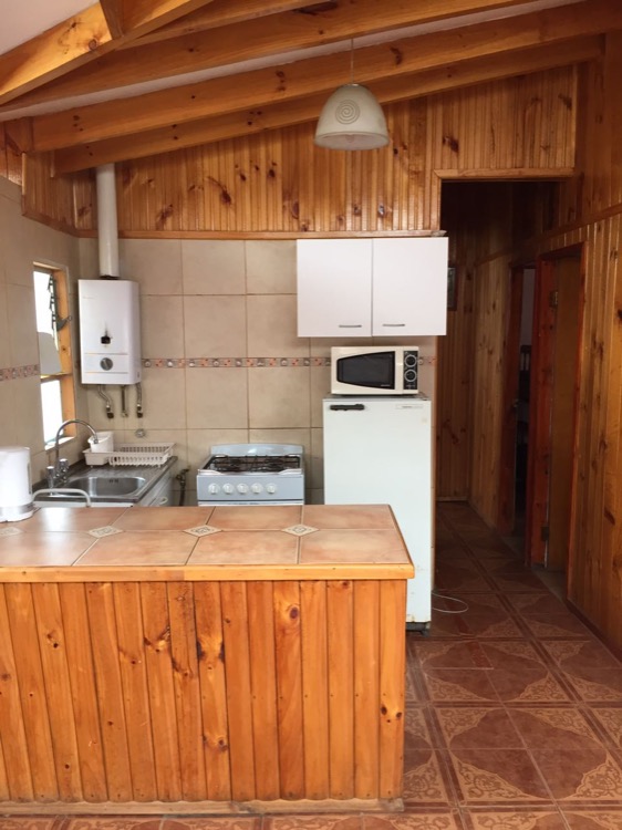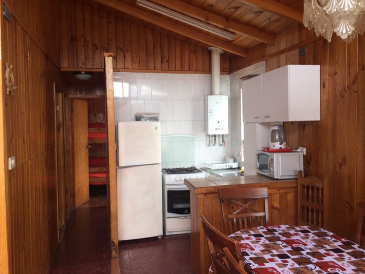 Cabaña de tres dormitorios y dos baños; Living com, comedor y cocina equipada en un ambiente integrado, con habitación en suite con baño completo, pueden alojar cómodamente a 10 personas.