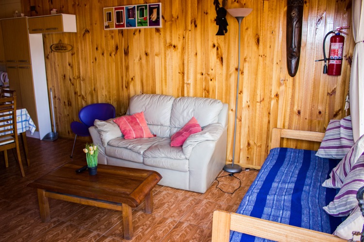 Cabaña en pilotes con vista al mar, de dos dormitorios y un baño; living, comedor y cocina equipada en un ambiente integrado, se puede bajar caminando a la playa distante tan solo a dos cuadras, pueden alojar cómodamente a 5 personas.