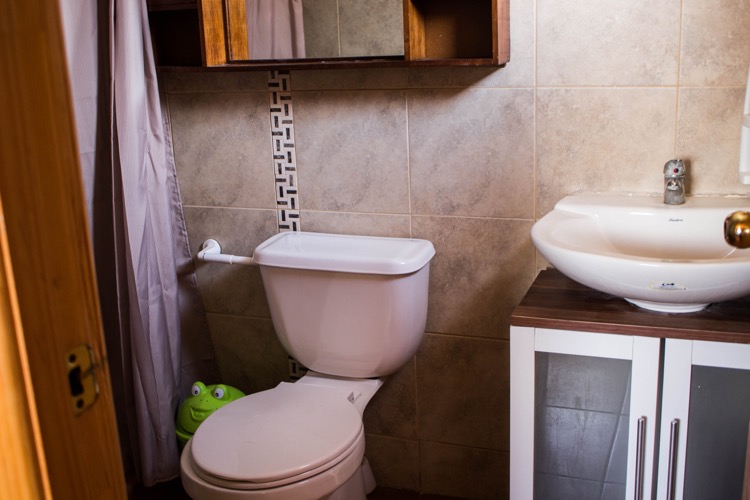 Cabaña en pilotes de tres dormitorios y dos baños con privelegiada vista al mar; living, comedor y cocina equipada en un ambiente integrado con una habitación en suite con baño completo, pueden alojar cómodamente a 8 personas.