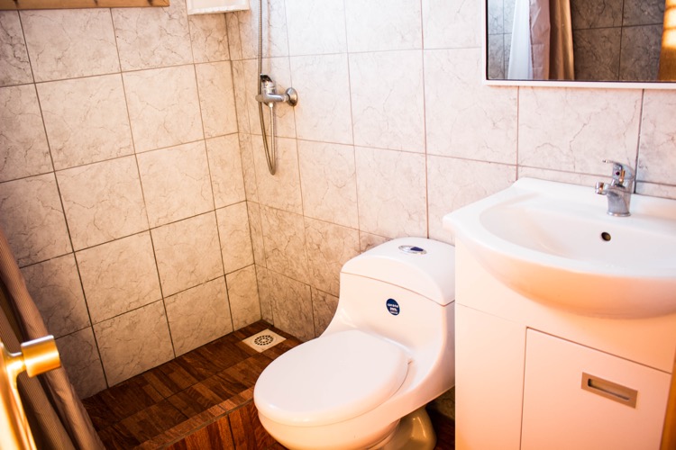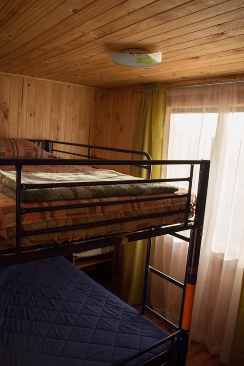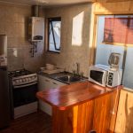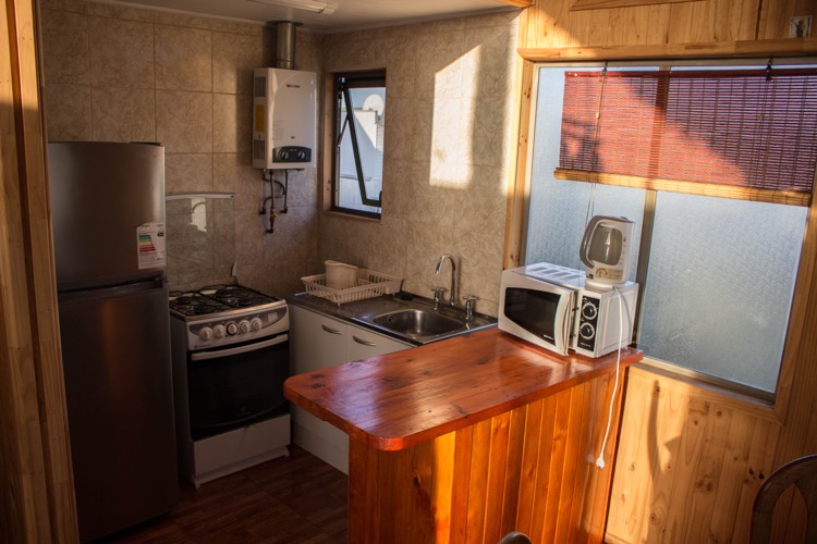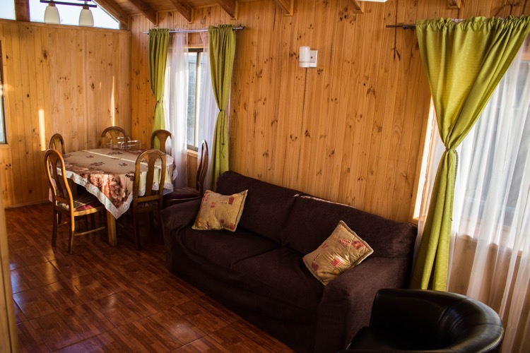 Cabaña en pilotes de tres dormitorios y 1 baño; living, comedor y cocina equipada en un ambiente integrado, pueden alojar cómodamente a 6 personas.